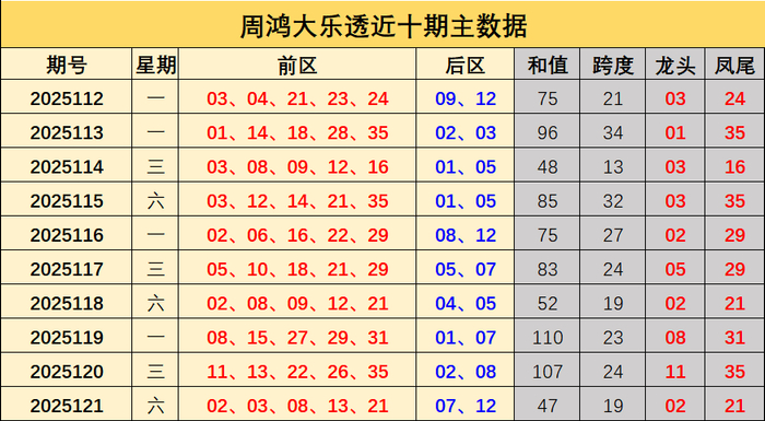 122期周鸿大乐透预测奖号:和值跨度分析